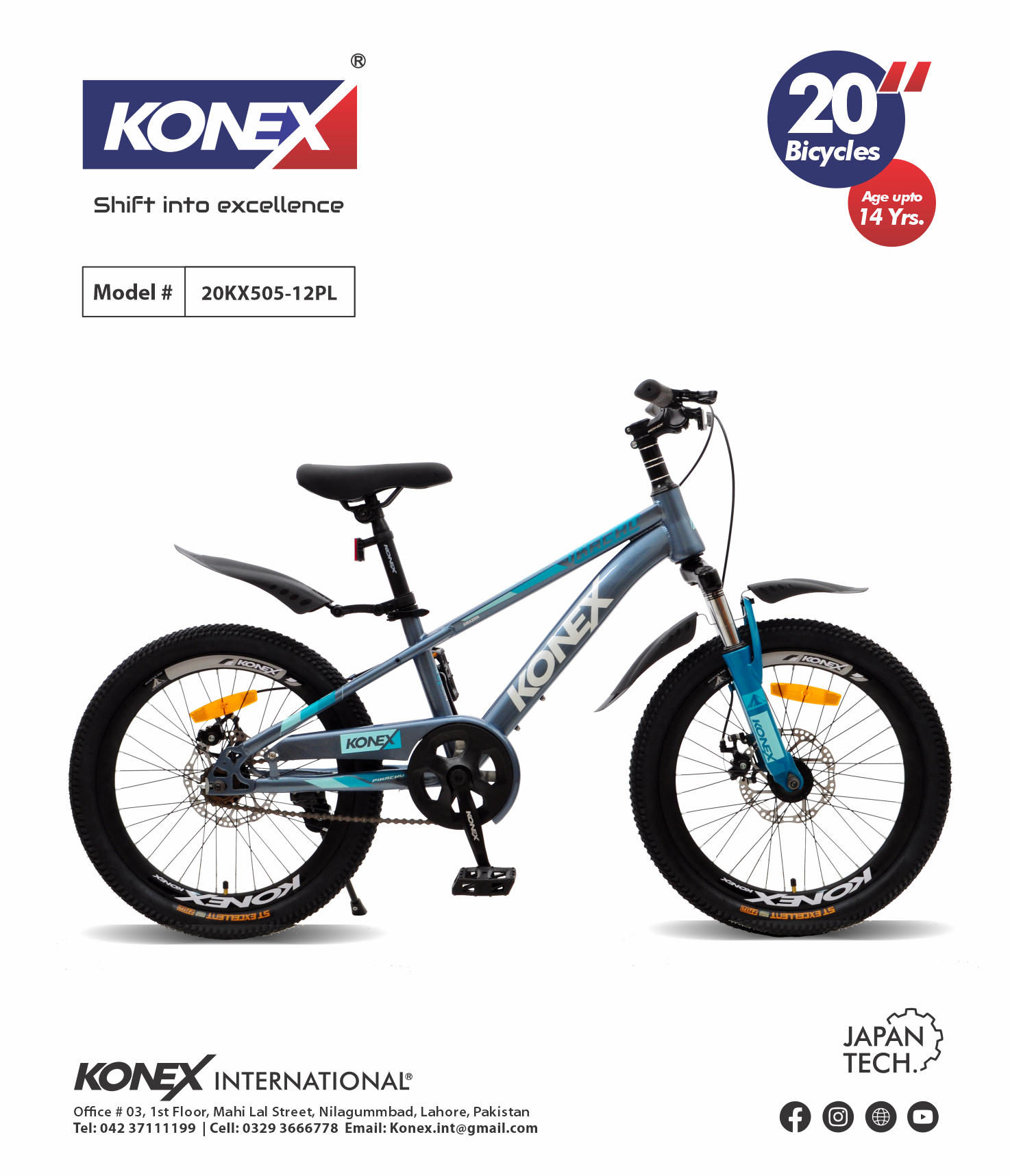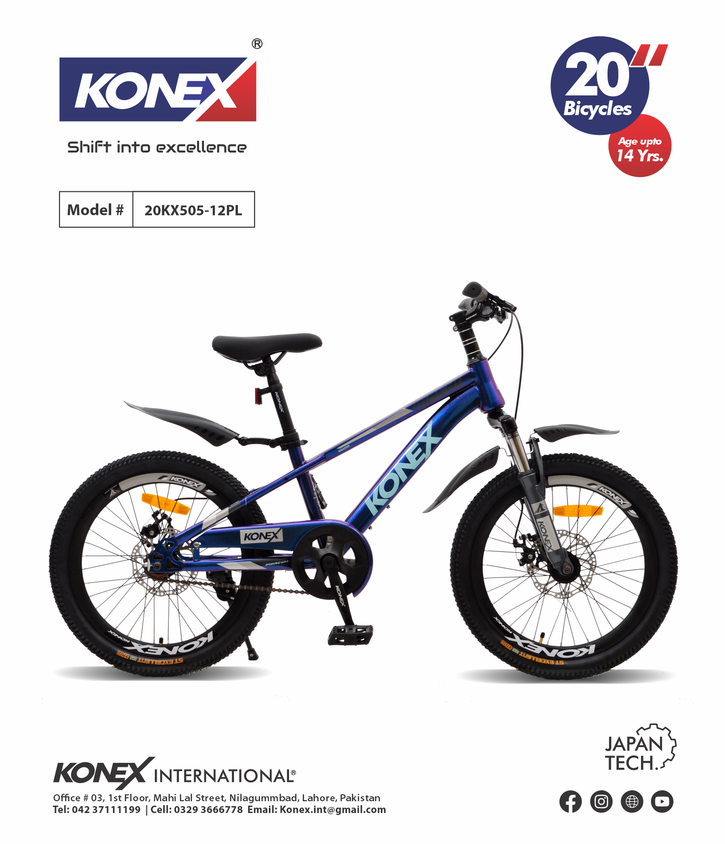The KONEX 20KX505-12PL is the ultimate street-sport machine for pre-teens and young teenagers up to 14 years old. Engineered with a focus on agility and a lightweight feel, this model ditches the heavy rear carrier for a sleek, aggressive profile that looks fast even when it’s standing still. Built with “Japan Tech” precision, it’s the perfect ride for those who want mountain bike performance with a modern, sporty aesthetic.