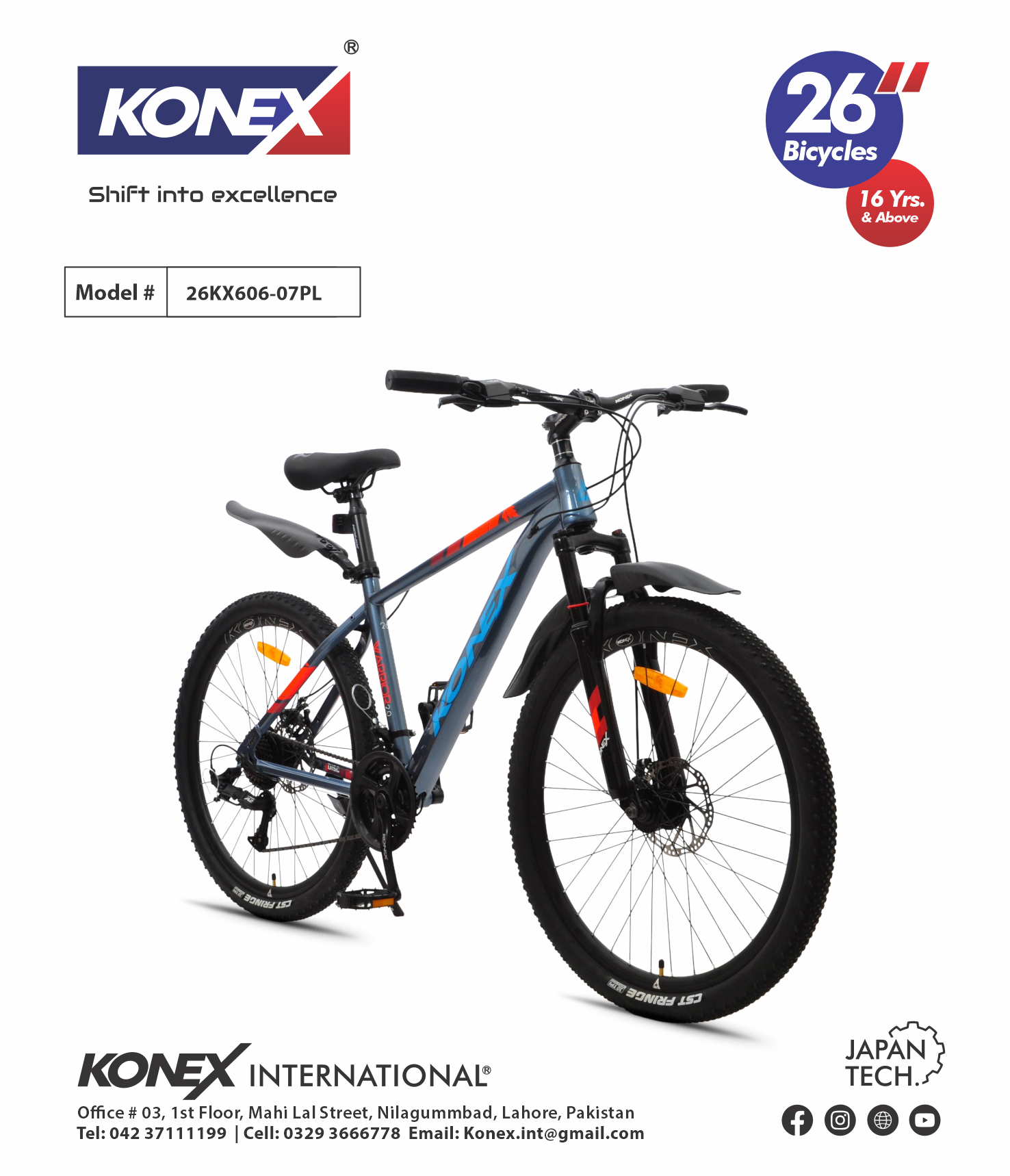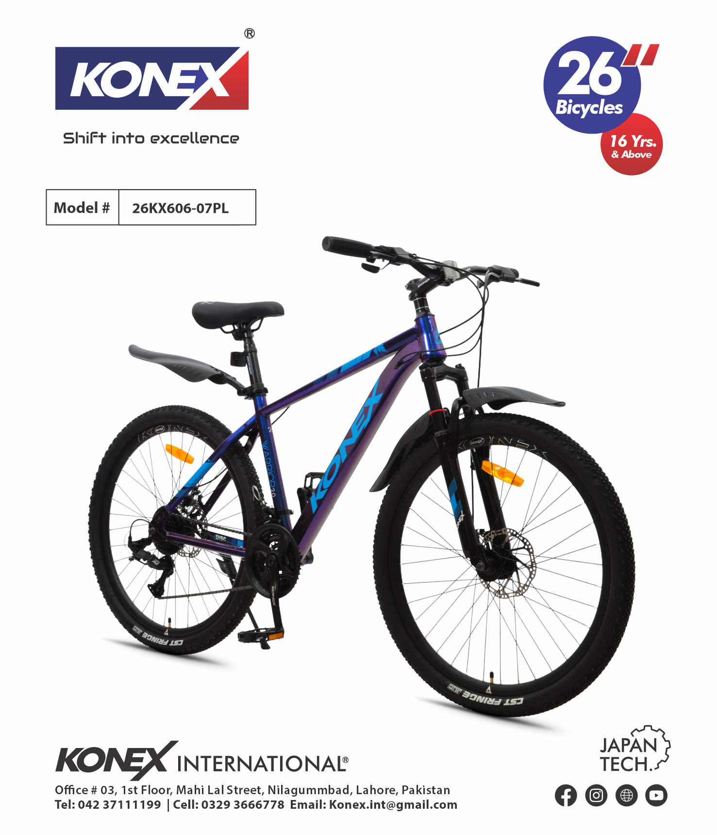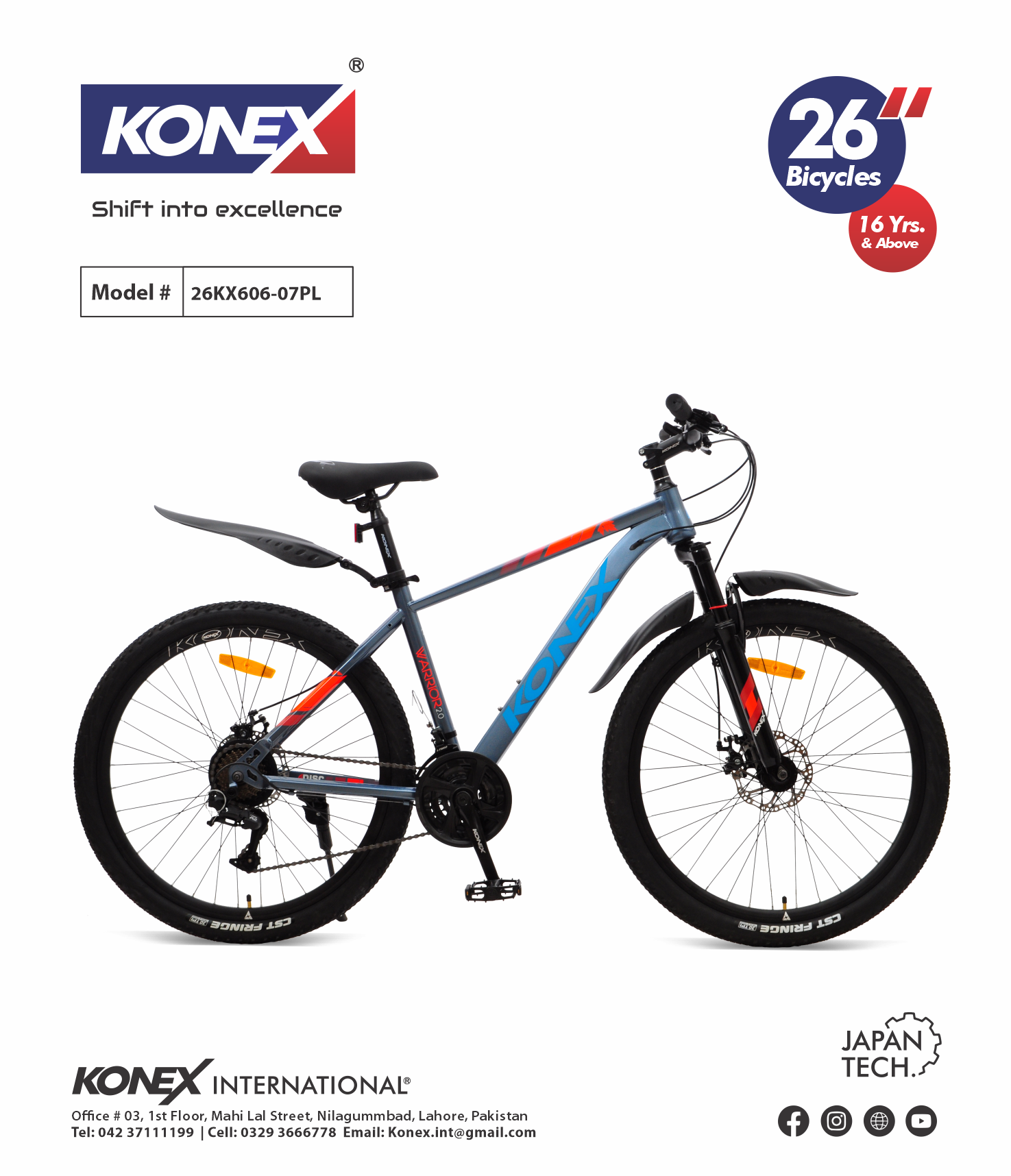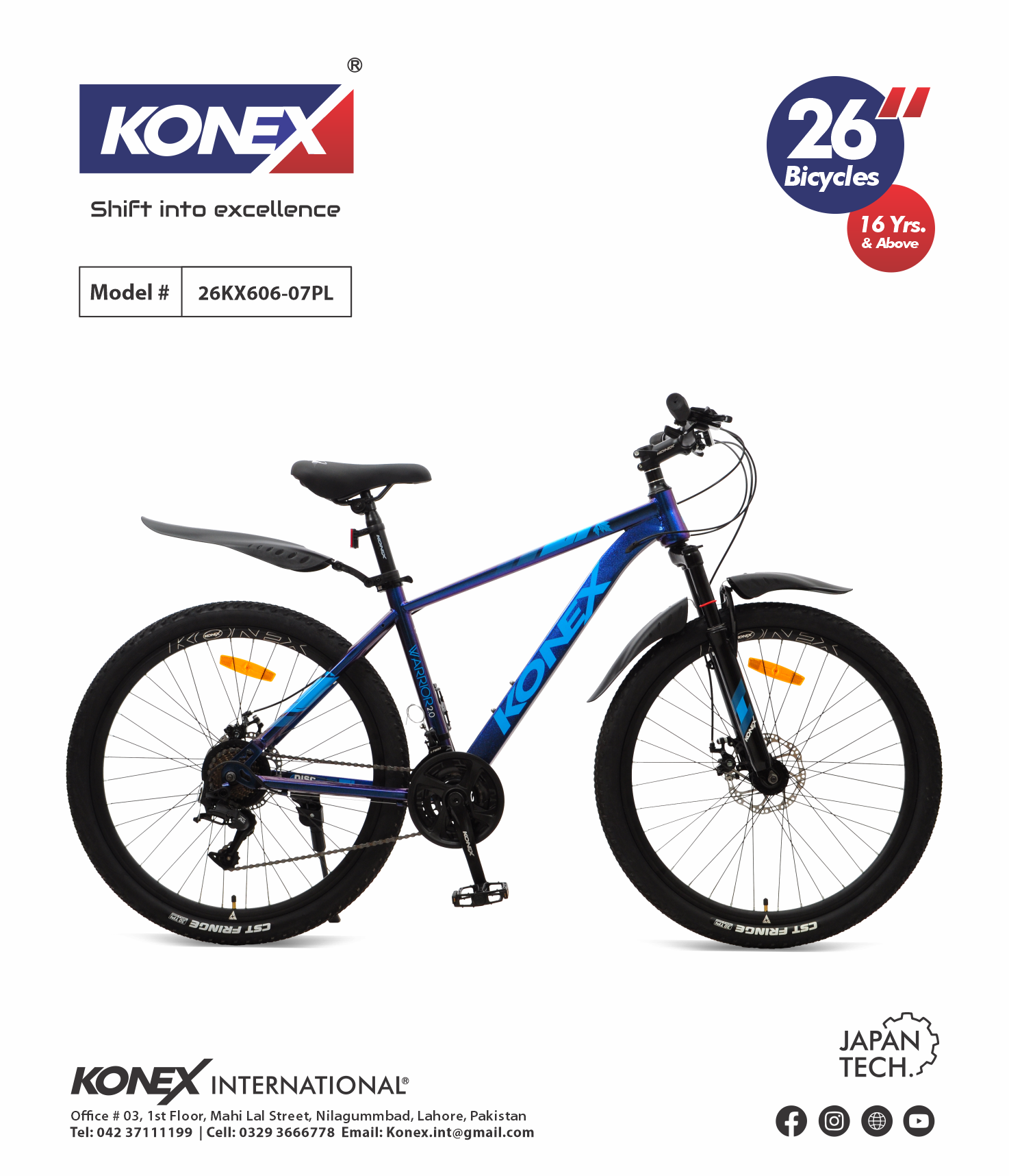 The KONEX 26KX606-07PL is a high-performance 26-inch mountain bike Plastic Mudguard built for riders 16 years and above. Engineered with “Japan Tech” precision, this model is designed to tackle everything from steep inclines to rugged off-road trails with ease. It combines a lightweight, durable frame with advanced mechanical components for an elite riding experience.